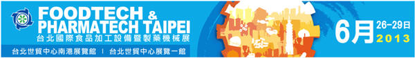 Foodtech & Pharmatech Taipei 2013 June 26th-June 29th, 2013 at TWTC Nangang Exhibiton Hall |